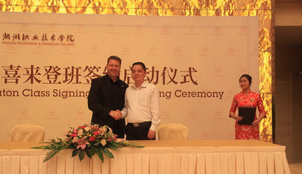 10月13日,湖州职业技术学院与湖州喜来登温泉度假酒店的喜来登订单班开班暨校企合作签约仪式在太湖度假区喜来登温泉度假酒店隆重举行。湖州旅游度假区旅游发展局倪利锋、喜来登温泉度假酒店总经理柏南、湖州职业技术学院副校长金雁、湖州职业技术学院旅游与公共管理学院领导以及酒店专业教师参加了签约仪式。