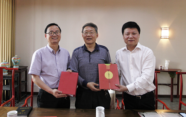荣休仪式上,周家健和丁继安还代表学校为马青云老师颁发了教书育人终身成就奖和纪念册。