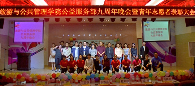 10月27日晚,旅游与公共管理学院团委学生会在1号楼3号报告厅举办公益服务部9周年庆典暨学院优秀青年志愿者表彰大会。晚会表彰了“爱心寝室”和“学院优秀青年志愿者”。