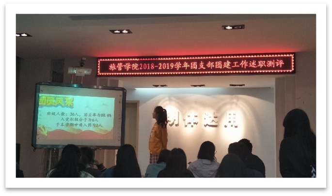 4月10日,旅游与公共管理学院团委在6431实训室召开2018-2019学年团支部书记述职报告会,团委书记成吉、学风建设辅导员罗玲以及学院团委学生会主席团参与此次述职报告会评审。
