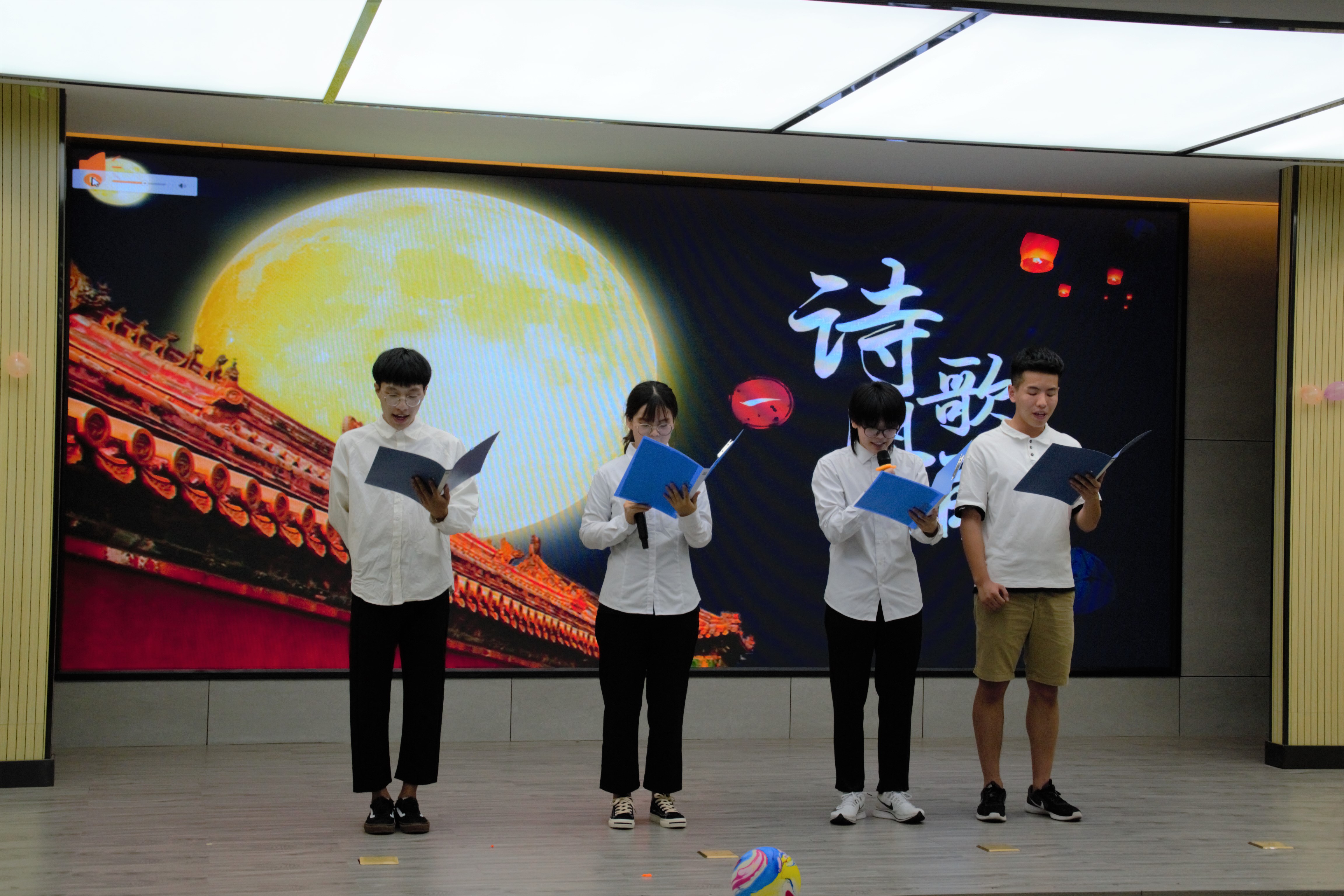 思乡之情,以诗佳抒。本次活动主打环节是中秋主题诗歌朗诵,通过对古代主题诗歌的吟咏诵读,同学们既可以体会古人的情意眷恋,也可以借以抒发自己的真挚情感,还可以进一步弘扬中国诗词文化。同学们或激昂澎湃,或婉转绵长,又或朴实真切。不同类型的诗歌都是颂扬着同样的情感--思乡之情。主题诗歌朗诵之后,活动汇现场还包含心有灵犀、蚂蚁搬豆、中秋趣说等环节,满满的都是趣味温馨的游戏活动。
