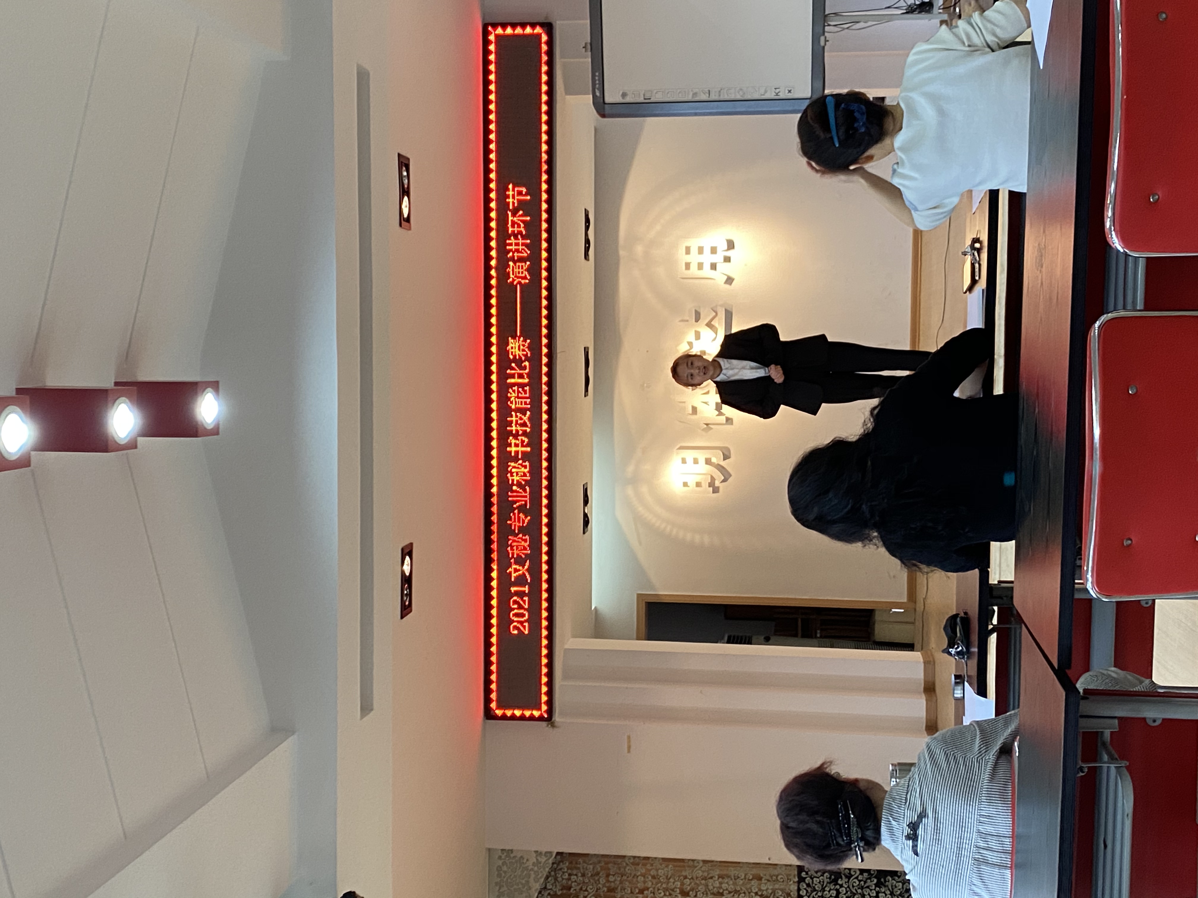本次比赛由秘书工作情景剧、主题演讲、PPT美化三部分组成。比赛现场选手们发挥出色,充分展现了文秘学生的专业风采。文秘2001蒋铱婷、文秘2002戴一清等同学在主题演讲环节胜出;文秘2002徐宏松、文秘2001杨佳怡同学分别获得PPT美化的一等奖和二等奖;此外文秘2002卢梦梦、王梦园组获得秘书工作情景剧团体一等奖。据悉,这样的秘书职业技能周比赛每年都会定期举行,比赛不仅是为了考量文秘专业学生的知识技能掌握情况,同时也是为文秘专业选拔参加各类技能竞赛的参赛选手,用优中选优的办法确保以最优质的状态参加各类竞赛。