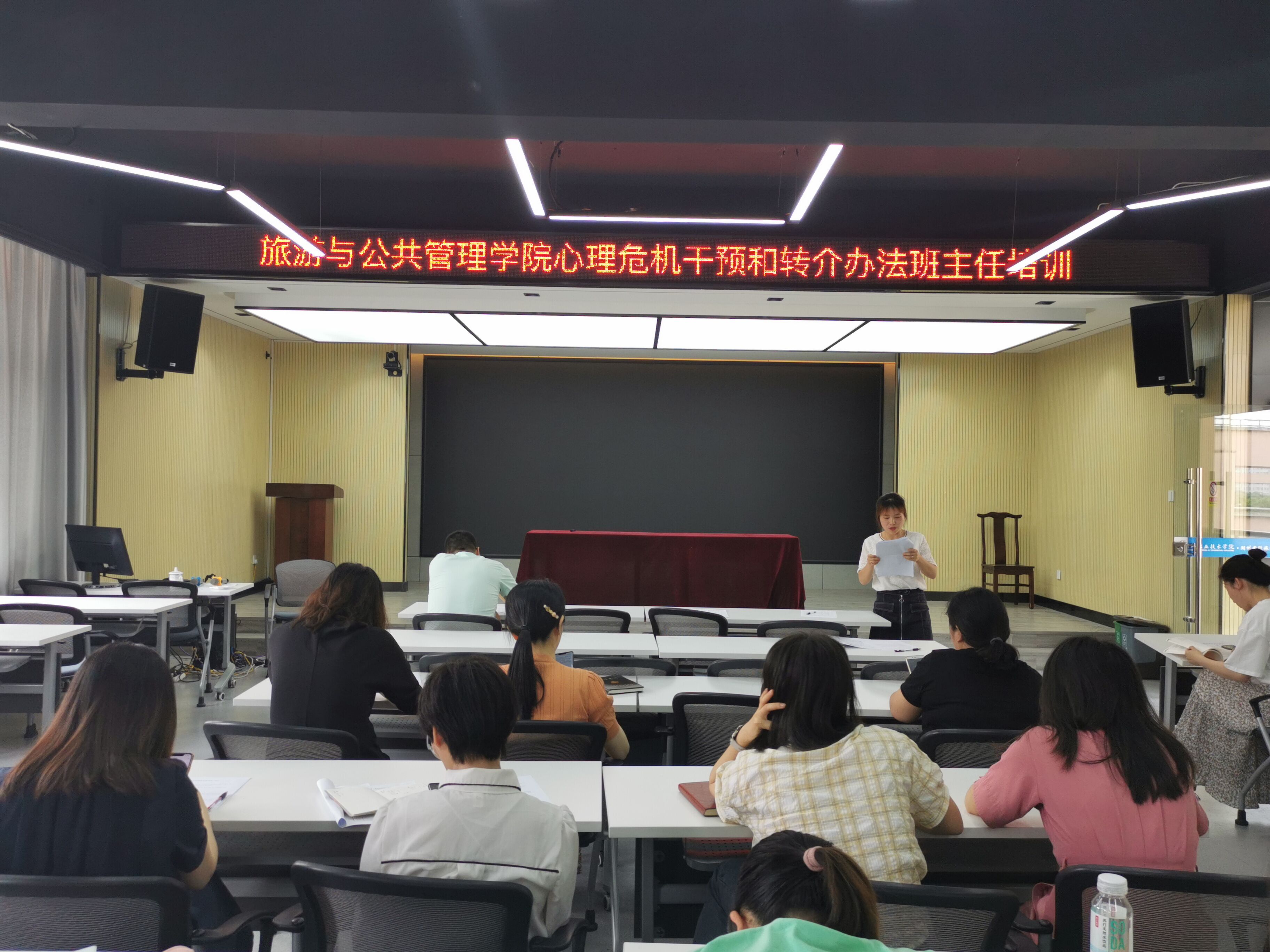 为进一步提高我院班主任队伍的心理健康教育工作专业化水平,提升班主任的心理危机干预和心理危机事件处置能力,6月1日,旅游与公共管理学院开展了一场心理健康教育工作专题培训,学院辅导员和全体班主任参加了此次培训会。