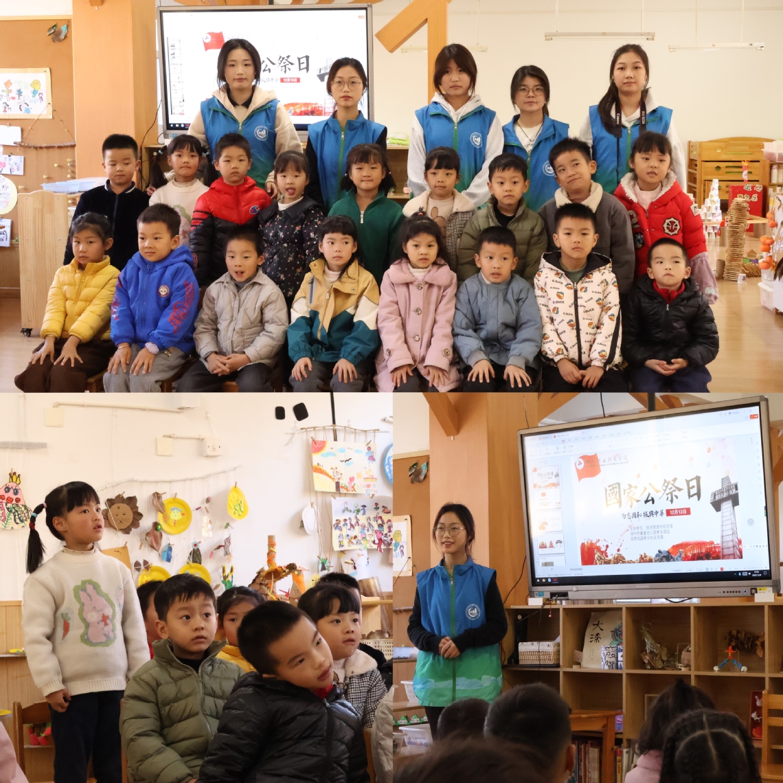“历史不会因时代变迁而改变,事实也不会因巧舌抵赖而消失。”宣讲团成员根据幼儿的年龄特点,甄选了丰富的图片资料和视频资料,通过播放历史影像资料、谈话、讲解等方式引导幼儿回顾历史,在谈话中,孩子们知道了国家公祭日的由来,了解了南京大屠杀这一历史事件中,日军惨无人道的暴行造成了30万同胞悲惨离世的真相,明白了只有努力学习、振兴中华才能不受外敌侵略。