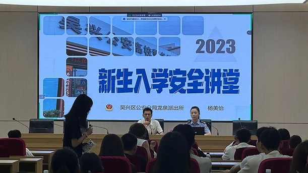 安全教育作为始业教育的第一课,旅游管理学院特邀请龙泉派出所一级警长杨美怡警官为新生开启安全讲堂。杨警官首先向同学们普及了湖州反诈防诈热线及使用场景。根据当前常见的诈骗类型,按照兼职类、游戏交易、网络赌博、冒充特定人员实施诈骗、中奖返利等类别逐个进行分析。除此之外,杨警官还介绍了防盗、网络安全、禁毒、反邪教、交通安全等相关安全知识,全方位护航新生安全,筑牢校园安全屏障。