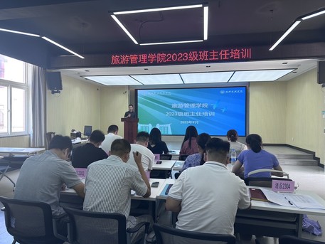 为进一步落实立德树人根本任务,推进三全育人工作实效,切实提升班主任队伍业务能力和工作水平,更好推进学生管理各项工作。近日,旅游管理学院开展2023级新生班主任培训,学院学生工作负责人、全体辅导员、新生班主任参加培训。