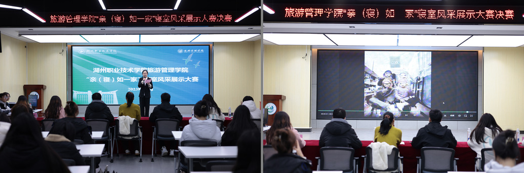 经前期宣传,众多寝室踊跃参与,最终11间寝室在初赛评比中脱颖而出,顺利进入决赛环节。决赛采用“现场宣讲+视频展示”形式,内容丰富多彩,各参赛寝室带领大家一起欣赏寝室生活的点点滴滴,感受和谐寝室的独特魅力,收获了台下评委和观众们的阵阵掌声和笑声。经过激烈角逐,最终旅游2202班5-254寝室获得一等奖,旅游2203班5-246寝室、景区2201班5-314寝室获得二等奖,旅游2303班6-402寝室、旅游2302班11-403寝室、旅游2201班5-303寝室获得三等奖,景区2302班6-441寝室、旅游2303班6-410寝室、旅游2201班5-310寝室、景区2301班6-541寝室、旅游2306班6-332寝室获得优胜奖。