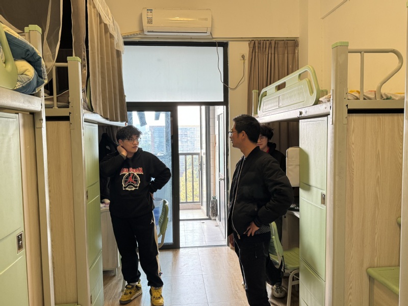 走访过程中,学院领导与学生进行了亲切交流,并提醒同学们积极调整身心状态,以饱满的精神全身心投入到新学期学习生活中;同时,提醒同学们要高度重视消防安全,严格遵守校纪校规,不使用违规电器,保持宿舍干净卫生,以主人翁的姿态自觉维护好寝室“小家”的生活秩序,杜绝安全隐患。