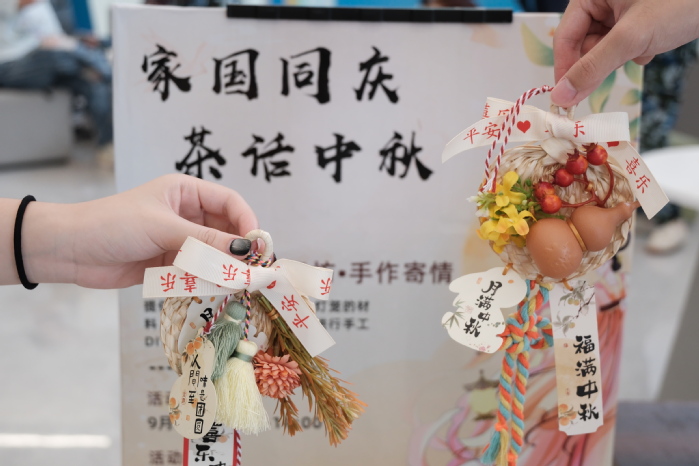 “DIY工坊·手作寄情”为同学们提供了制作象征吉祥与童趣的手工风车、灯笼,或编织寓意平安团圆的中秋竹编挂件。一缠一绕、一拼一贴之间,融入的是对家人的思念、对祖国的祝福,一件件独一无二的手工作品,成为了这个双节最温暖的纪念。