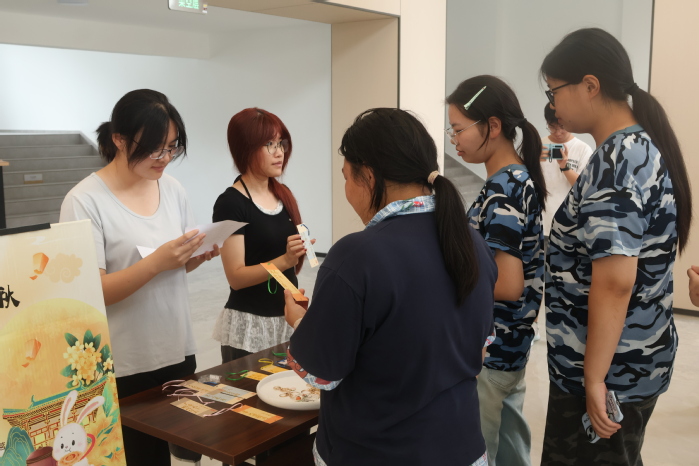 “茶词灯谜·茶韵谜心”区域悬挂着精心设计的谜题,内容涵盖中秋典故、茶文化知识等。同学们或驻足沉思,或热烈讨论,在破解谜题的过程中不仅增长了知识,更感受到了传统文化的独特魅力。每答对一题,成功的喜悦和精美的奖品都引来阵阵欢笑。