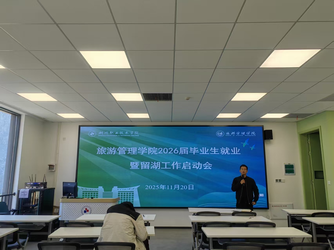 为早谋划、早部署、早行动,全力促进2026届毕业生更加充分、更高质量就业,并积极引导毕业生扎根湖州、服务地方发展,11月20日,旅游管理学院在22203教室召开2026届毕业生就业暨留湖工作启动会。学院学生工作负责人、各教研室负责人、就业辅导员及全体毕业班班主任共同参加了会议。