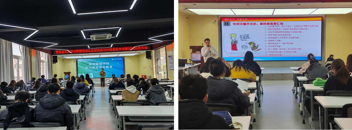 旅游管理学院开展毕业生实习就业安全教育毕业实习是学院实践教学环节的重要组成部分,是学生理论知识与实践相结合的重要阶段,也是培养学生独立实践能力的重要途径。校外实习安全事关重大,为确保学生实习期间的人身安全,进一步强化校外...